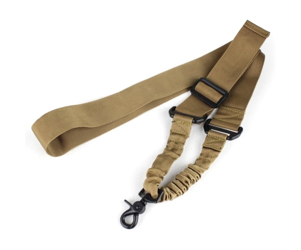 Одноточечный оружейный ремень с металлическим карабином и амортизирующей вставкой.